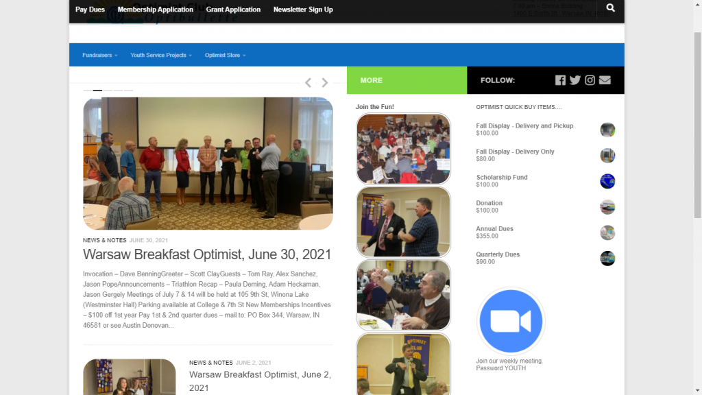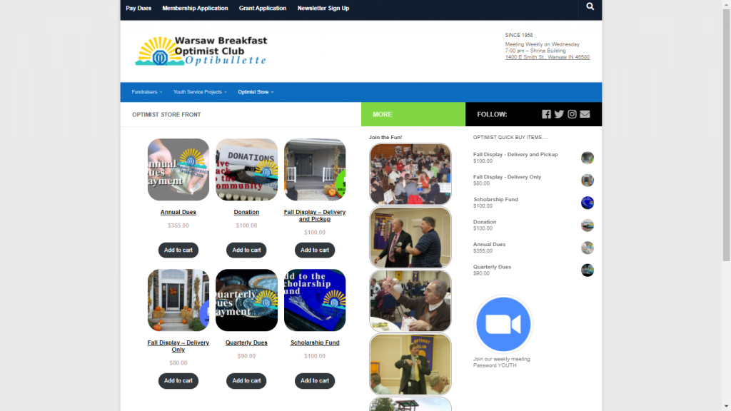 We have added a shopping cart to the website were Dues, Fundraisers and Donations all can selected and paid for via Credit Card or Bank Check.