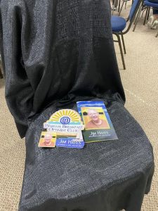 - Jim Hayes was honored today by a collection for our Scholarship Fund