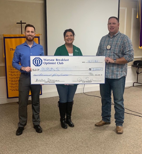 Check presentation – Shelly Schwab & Zane Hollar with Big Brothers/ Big Sisters