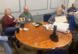 Program – Our program today was the White Elephant Exchange. The proceeds from this crazy activity go toward the Breakfast Optimist Scholarship Fund.