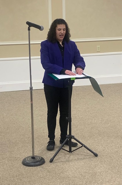 Today’s speaker is – Katherine Anders, WCHS Speech Team. Katherine had various members of the Speech Team share speeches. Kylah Cook, Var Bobba, Grace Ganser and Jessica Pogue presented their speeches.