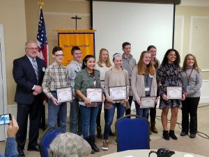 Warsaw Breakfast Optimist Students of the Week: Troy Akers, member and WCHS prinicpal, conducted with Amy Shively, Lakeview Middle School principal introducingthe students and their parents: Rylee Burns (Brant & Michelle Burns), Wrigley Crabtree (Aaron & Sarah Crabtree), Morgan Dyck (Don & Michele Dyck), Anna Gustafson (David & Jacqueline Gustafson), Taya Johnson (Tai Johnson), Kaylee Ochoa (Ricardo Ochoa & Maria Segura), Hunter Rice (Bryan & Amy Rice), Edward Robison (David & Sally Robison), Elena Sullivan (Patrick & Theresa Sullivan), Jack Yeager (Stephen & Meagan Yeager)