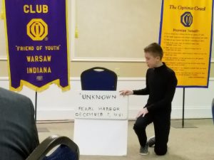 Chris Mahan gave an update on the Oratorical contest held Sunday, January 28. Congratulations to our Oratorical Contest Winners. Reagan Kauffman was our first place finisher w/ 225 pts (out of 300) while Jack Claypool was our 2nd place finisher w/ 219 pts. Both contestants are sons of Warsaw Breakfast Optimist Club members (Karen Kauffman and Jody Claypool).
