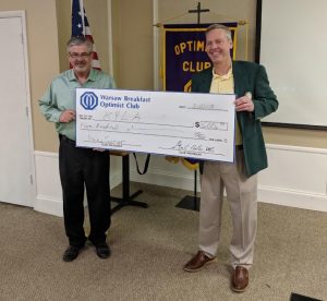 Tony Ciriello accepted a check on behalf of the Kosciusko Youth Leadership Academy for $500.