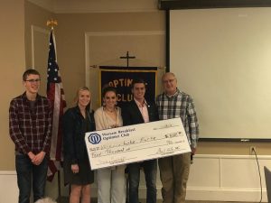 Lucas Harvey, WCHS Octagon Club President, presented a check from the Octagon Club for $4,000 to Crain Allebach accepting on behalf of Winona Lake Parks . The funds will be used to purchase a water fountain to be installed near the limitless park.